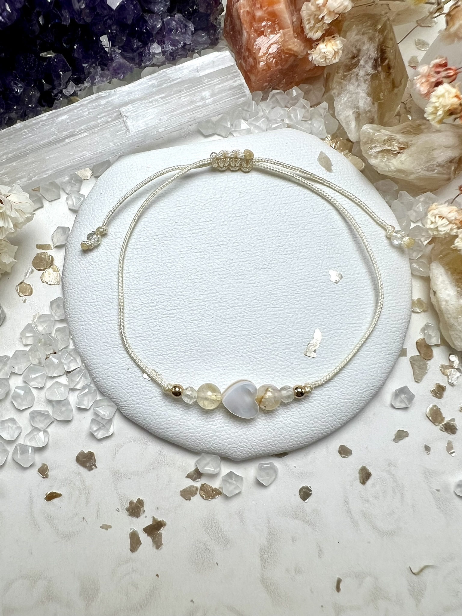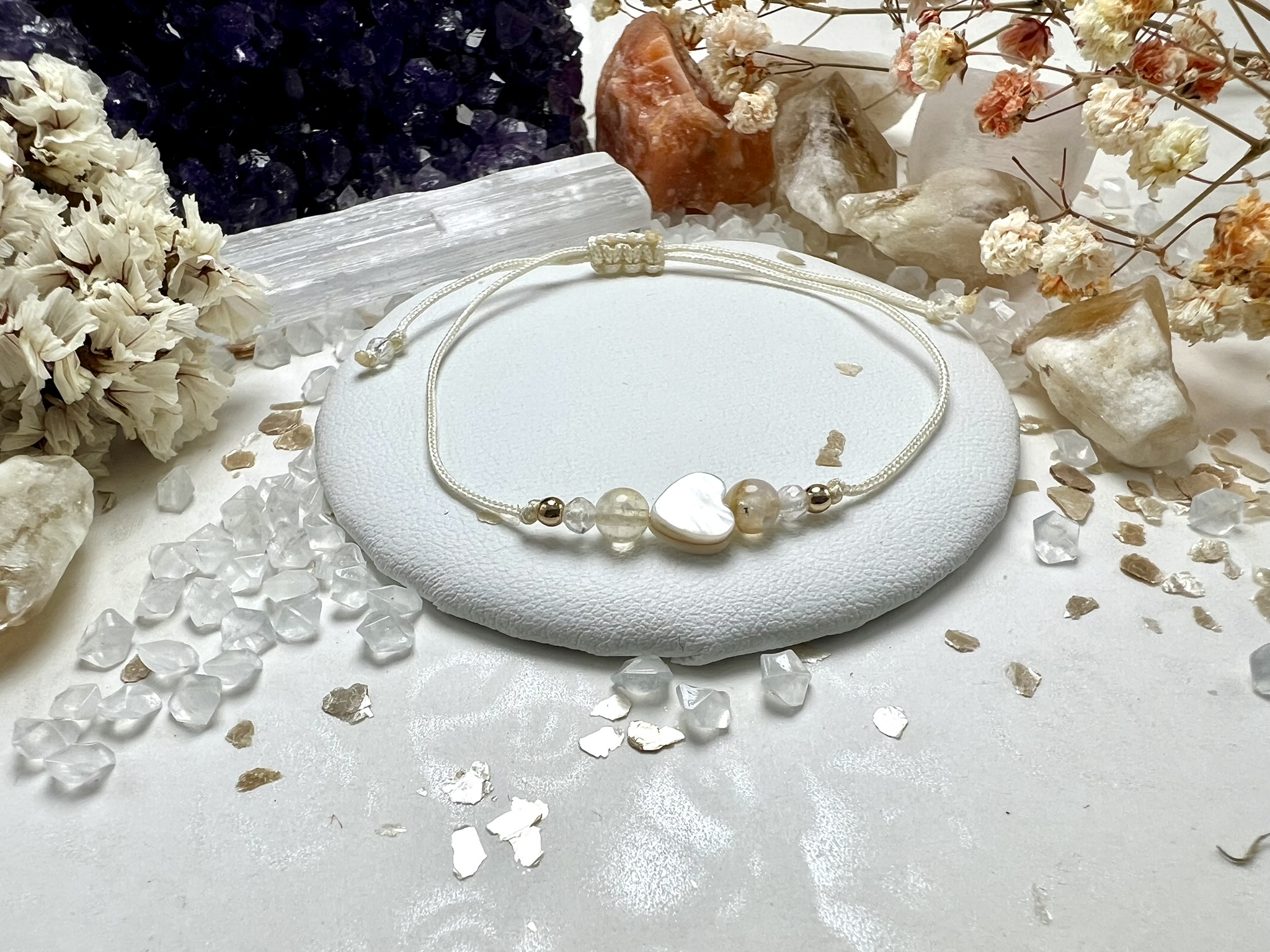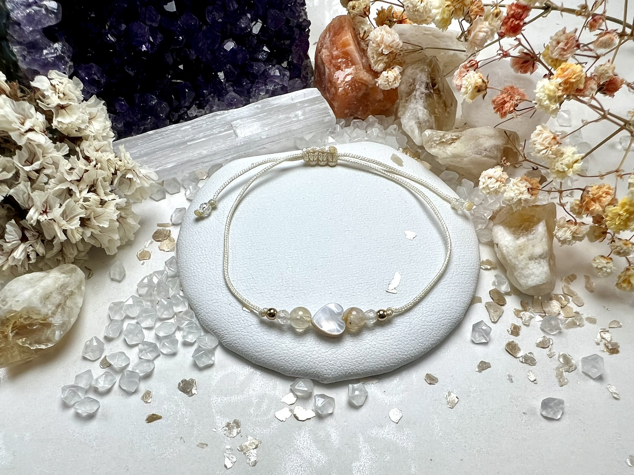 Talizman obfitości i wewnętrznej równowagi – cytryn, kwarc i masa perłowa splecione w świetlistą bransoletkę ciepła i wdzięczności.