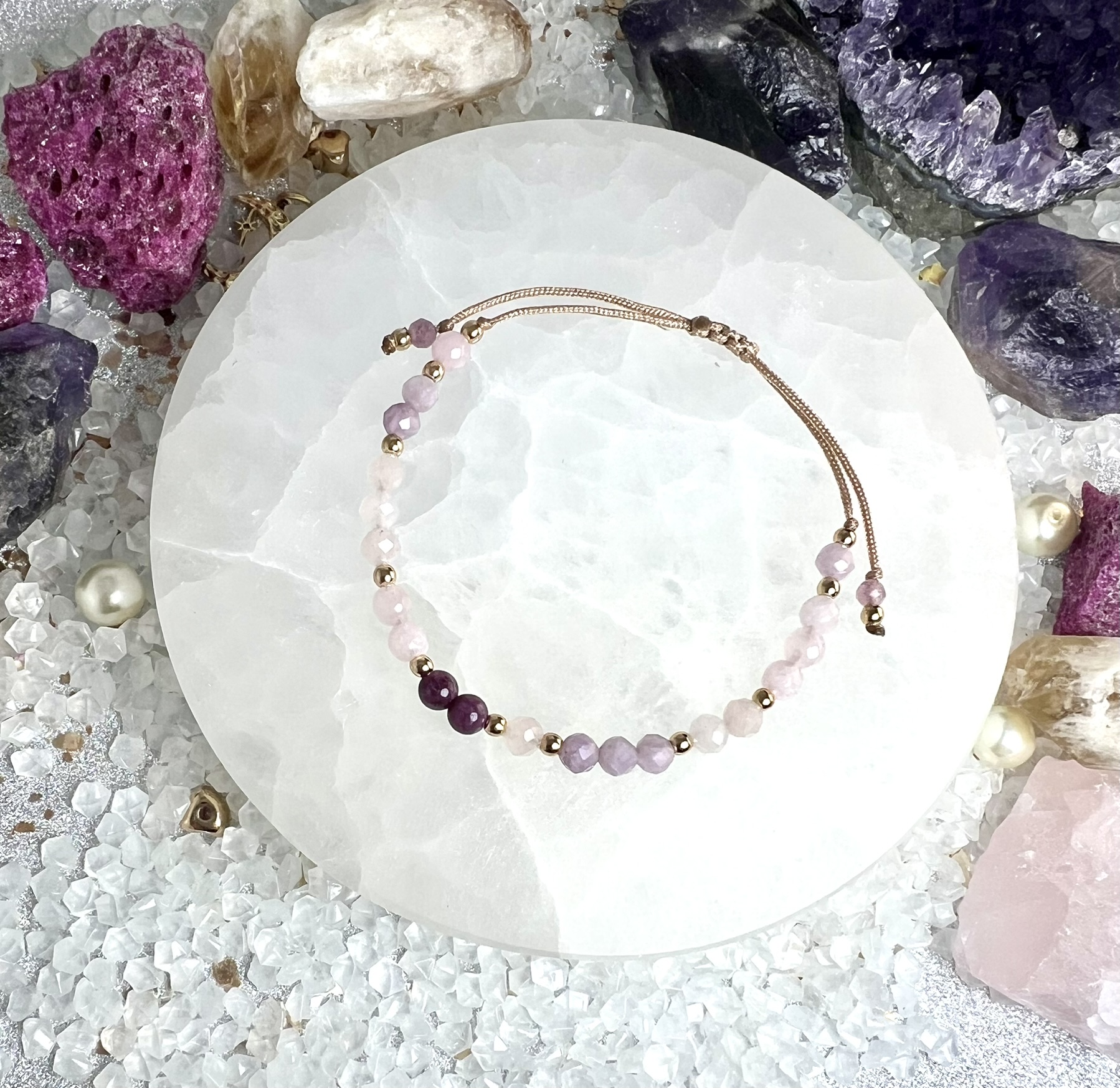 Kwarc różowy i morganit otwierają serce na miłość, ametyst koi emocje, a granat dodaje wewnętrznej siły i stabilności.