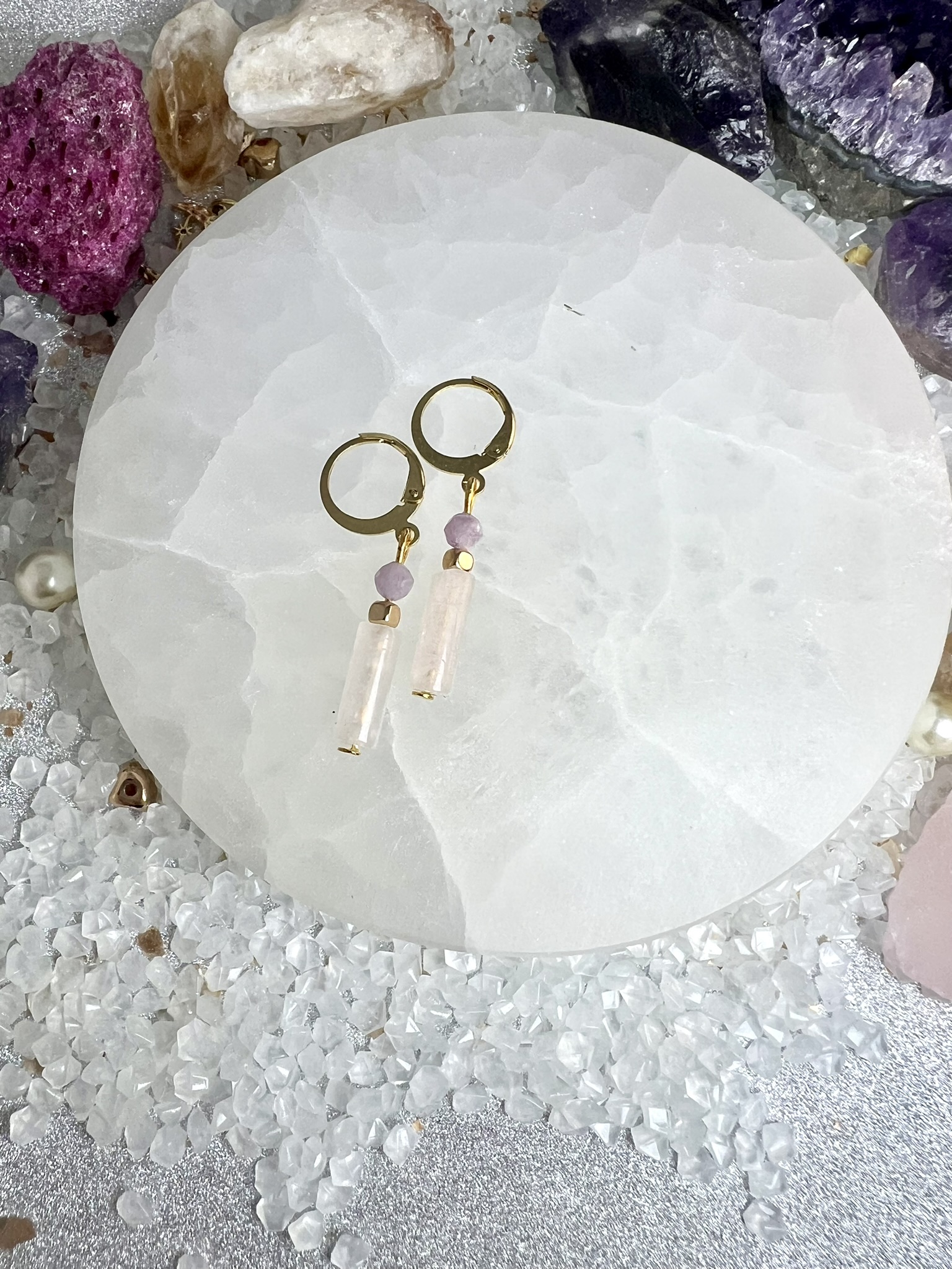 Kwarc różowy w kolczykach działa jak subtelne przypomnienie o łagodności wobec siebie i świata. Wspiera empatię, otwartość i harmonijne relacje.