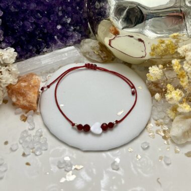 Talizman odwagi, determinacji i pasji – karneol, kwarc i masa perłowa splecione w bransoletkę, która budzi w Tobie wewnętrzny ogień i radość działania.