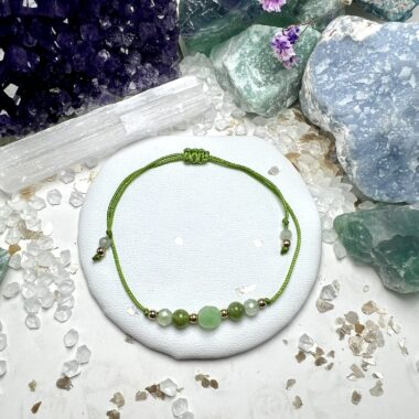 Talizman witalności, odnowy i harmonii z naturą – oliwin, prehnit i awenturyn zielony splecione w bransoletkę, która przywraca równowagę i świeżość ducha.