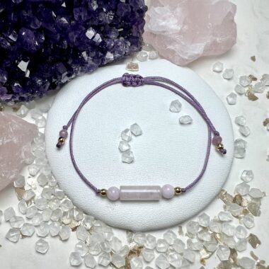 Bransoletka z Kwarcu Różowego z centralnym kamieniem w kształcie cylindra – symbol czułości, harmonii i spokoju serca.