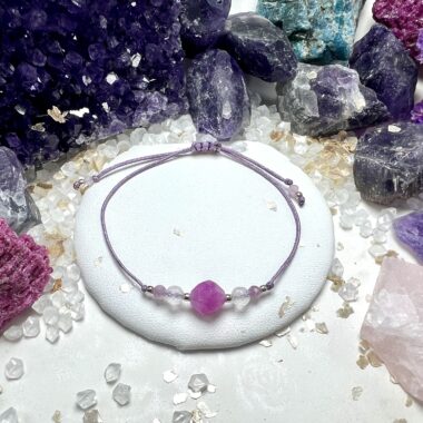 Talizman miłości, spokoju i emocjonalnego uzdrowienia – turmalin różowy, kwarc różowy i fosfosyderyt splecione w bransoletkę, która otula serce łagodnym światłem i harmonią.